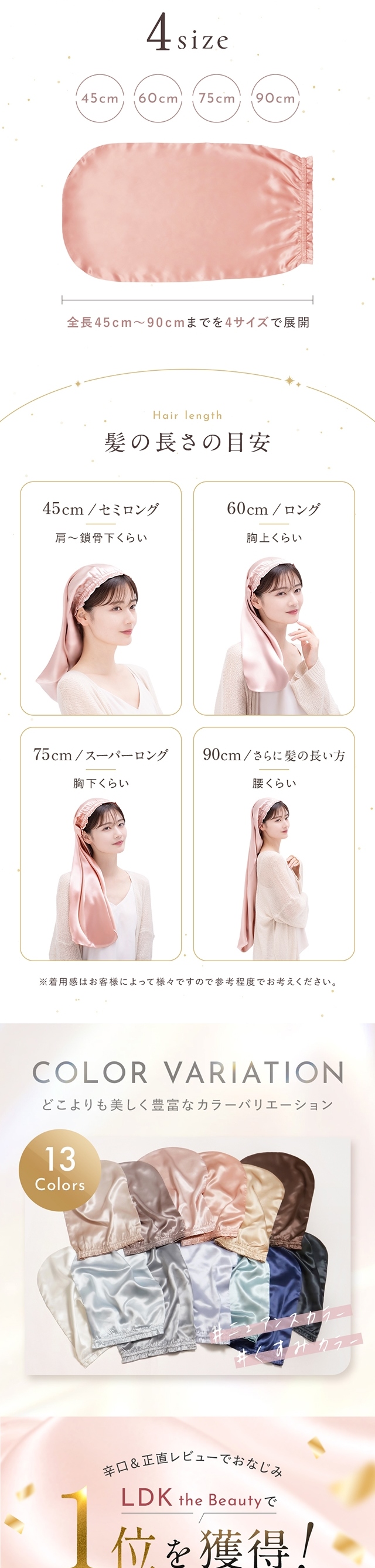 - 胸下ロングでこちらを購入しました。 朝起きた時、多少寝癖は付いていますが髪のツヤと手触りが最高です!ナイトキャップだけでここまで変わるとは、と驚いています。