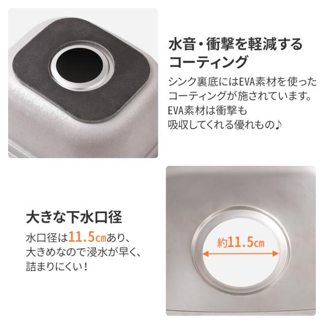 シンク裏底にはEVA素材を使ったコーティングが施されています。