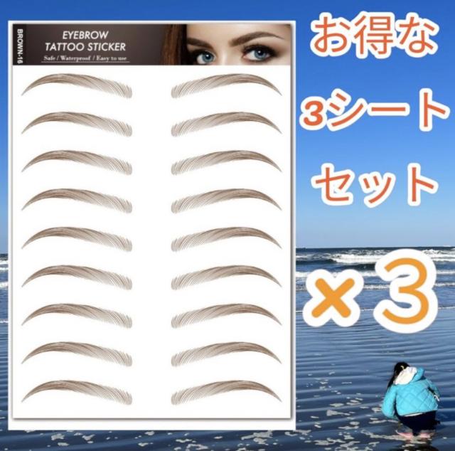タトゥーシール 眉毛シール アートメイク アイブロウ メイク用品 ブラック ブラウン 3シート ステッカー16 送料無料