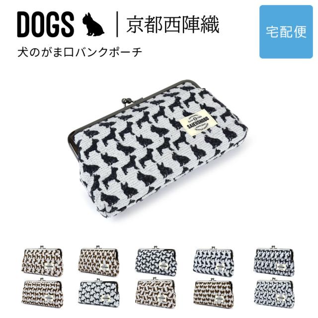 犬のがま口バンクポーチ DOGS 西陣織 日本製 犬柄 生地 撥水加工 ジャガード レディース SAIEIISHOBO 西栄【宅配便専用商品】通帳入れ マルチポーチ 犬グッズ 雑貨 犬好き ホワイト/ブラウン/チャコール 25011030