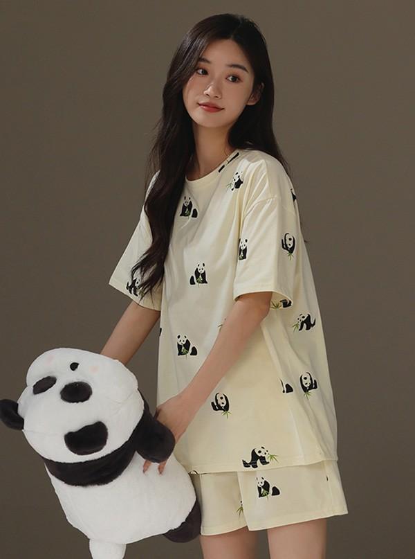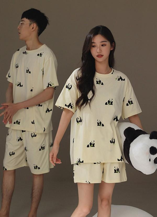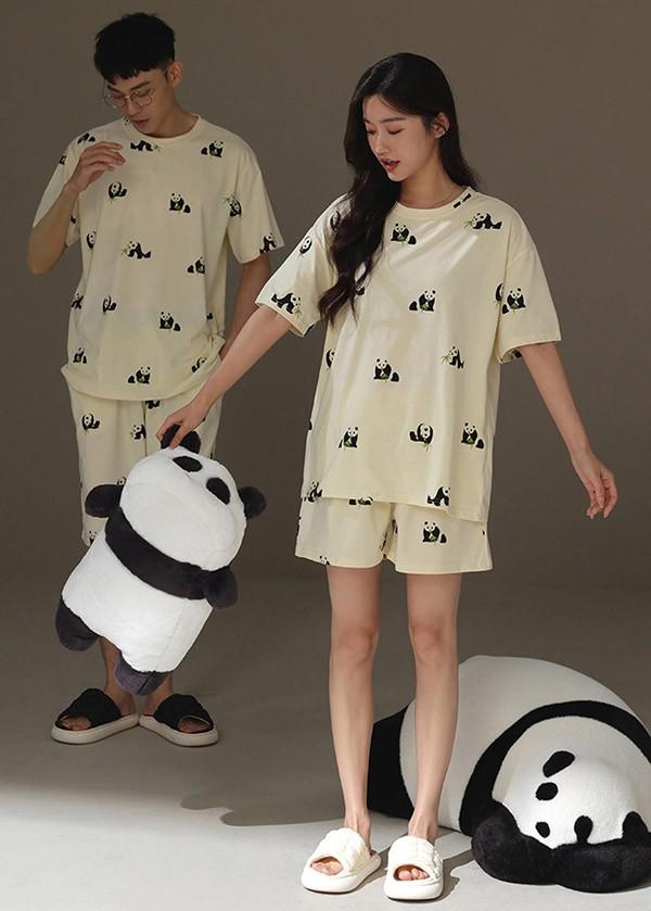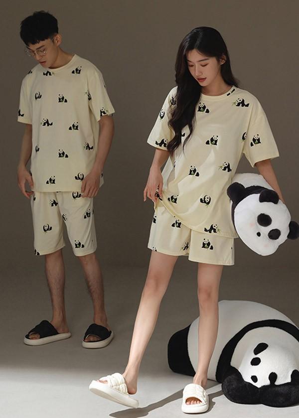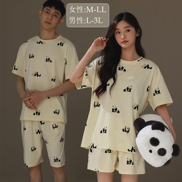 【レビュー投稿で+5%還元】ペアパジャマ 春夏コットン ナイトウエア パンダ柄 ルームウェア 上下セット 半袖 メンズ レディース パジャマ ペアルック カップル 可愛い おしゃれ 結婚祝い 母の日 プレゼント 大きいサイズ bi069zezel9