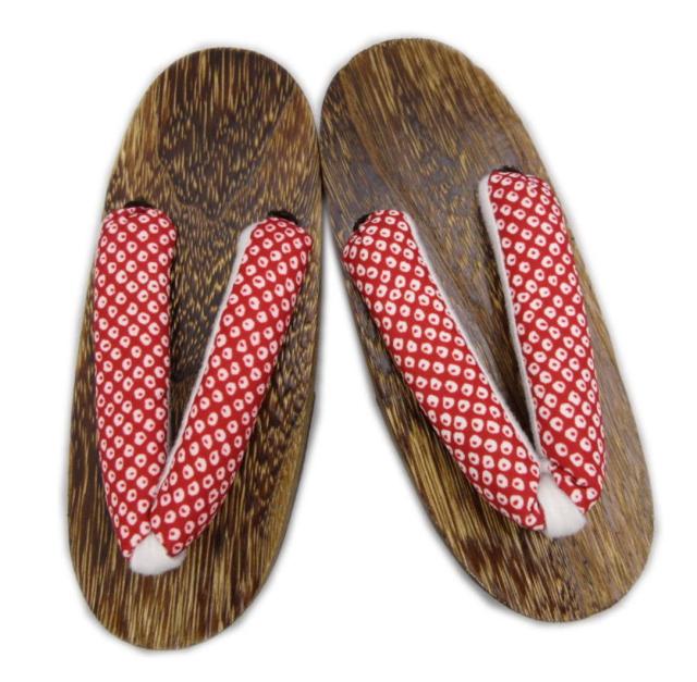 下駄 子供用 キッズ 女の子 焼桐茶台 赤色地かのこ柄 18cm 19.5cm 21cm 浴衣 ゆかた 甚平 げた ゲタ 女児 和装 19cm 20cm 単品