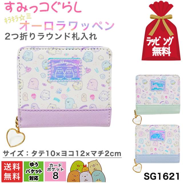 すみっコぐらし お財布 二つ折り 札入れ 小銭入 コインケース ラウンドファスナー チャーム付 人気キャラクター キッズ 小学生 中学生 女の子 レディース キッズ お年玉 誕生日 クリスマスプレゼント 入学 卒園 お祝い ギフト 動物 総柄 合皮 おばけのナイトパーク SG1621