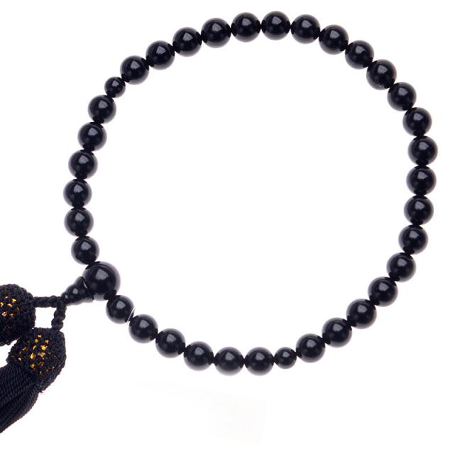 天然ジェット数珠 8mm 念珠 共仕立 黒 ブラック 女性用 片手略式