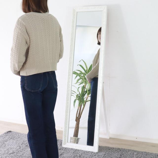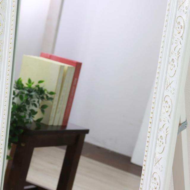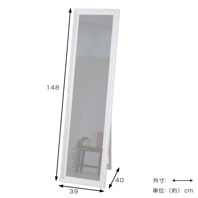 スタンドミラー 全身 アンティーク調 39×148cm ( ミラー 鏡 おしゃれ インテリア 飛散防止 姿見 全身鏡 シンプル 玄関 リビング かがみ ブロンズ ホワイト 白 )