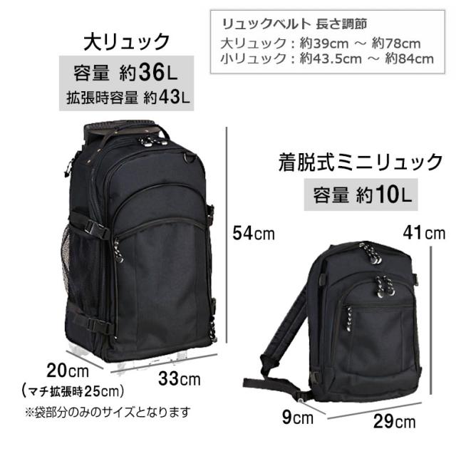 大容量 / 着脱式ミニリュック付き