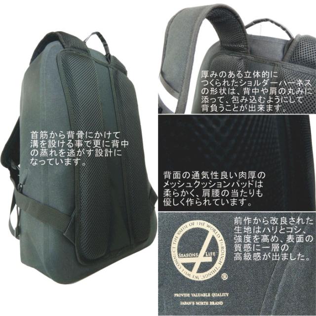 背面の通気性良い厚手メッシュクッションパッドは柔らかく、肩腰の当たりも優しく作られています。