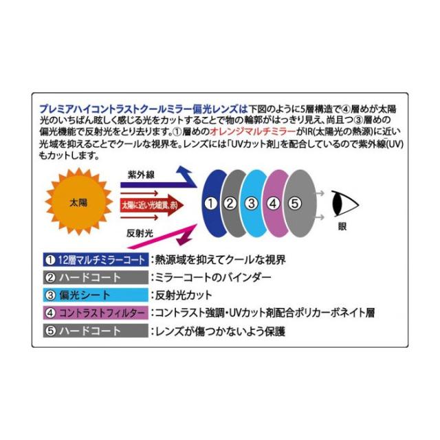 調整可能ノーズパッド・テンプル, 偏光レンズ, UVカット, プレミアハイコントラストミラー