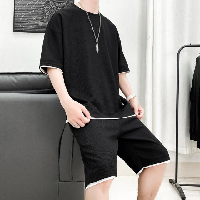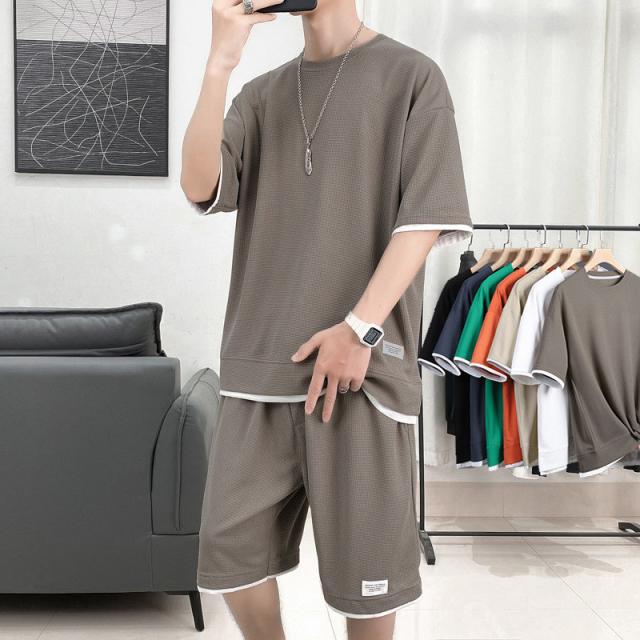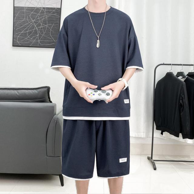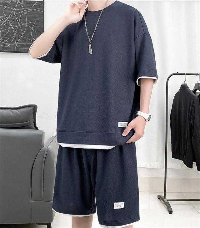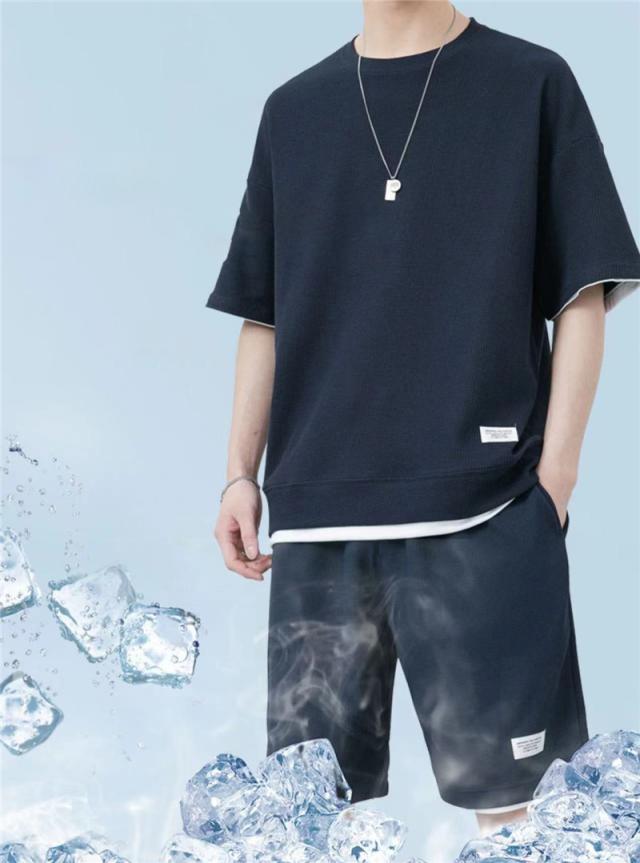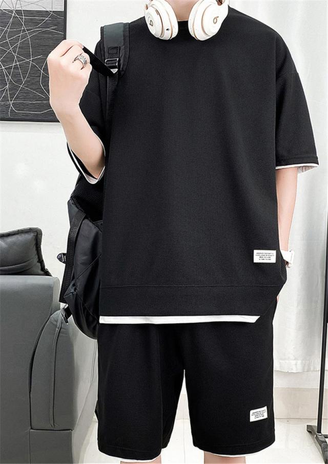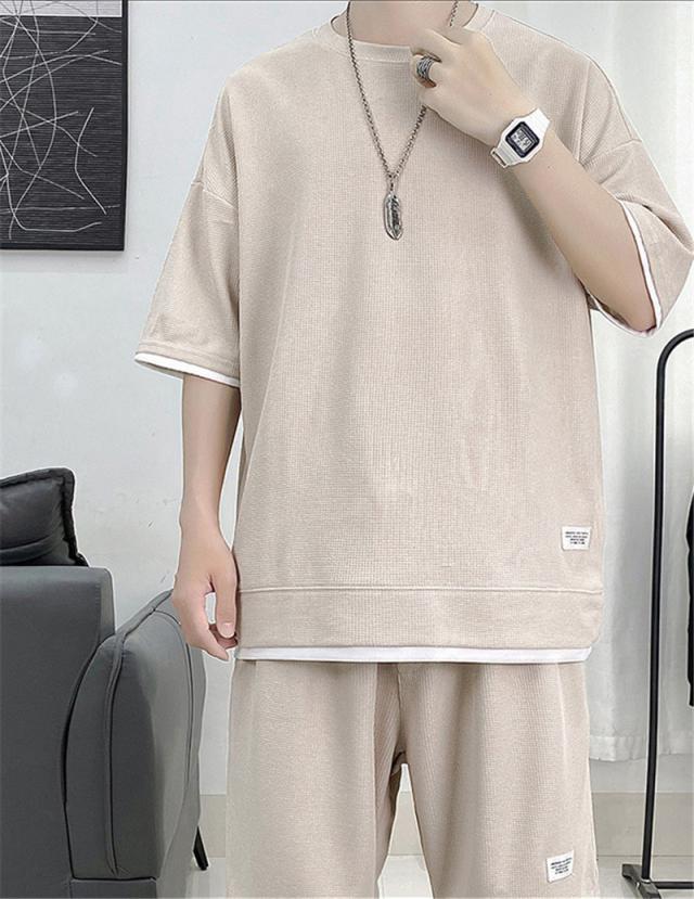 セットアップ メンズ ジャージ スウェット 上下セット 半袖 重ね着 ゆったり ウエストゴム Tシャツ カジュアル 吸汗速乾 スポ