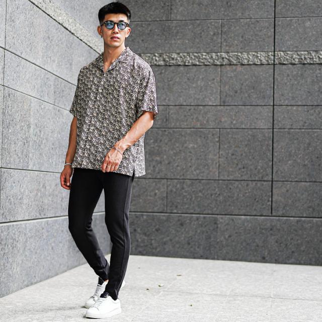 トレンドの柄を纏うビッグシルエットな開襟シャツ。