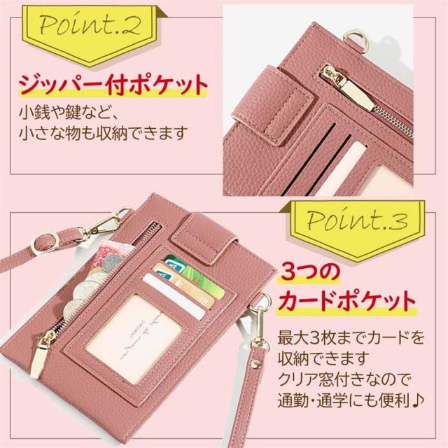 - ケータイカバーのショルダーだと画面が心配だったので、カードや、定期も入れれるこちらを購入。思ってた以上に色が可愛く、大きさもちょうど良かった。カードを入れるところが少しキツめかなと思ったけど、その方が...