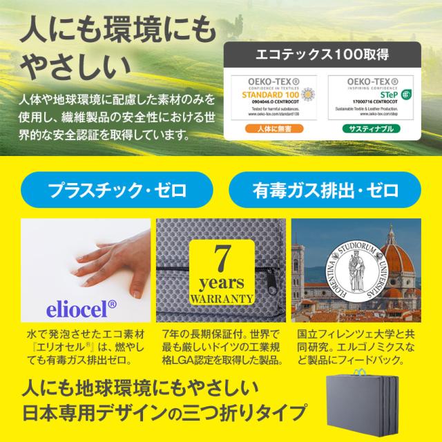 | メッシュウイングなどの三つ折りマットレスの熟睡性能はそのままに。 日本のライフスタイルを徹底的研究して開発された日本国内限定の新プレミアムモデル。 |