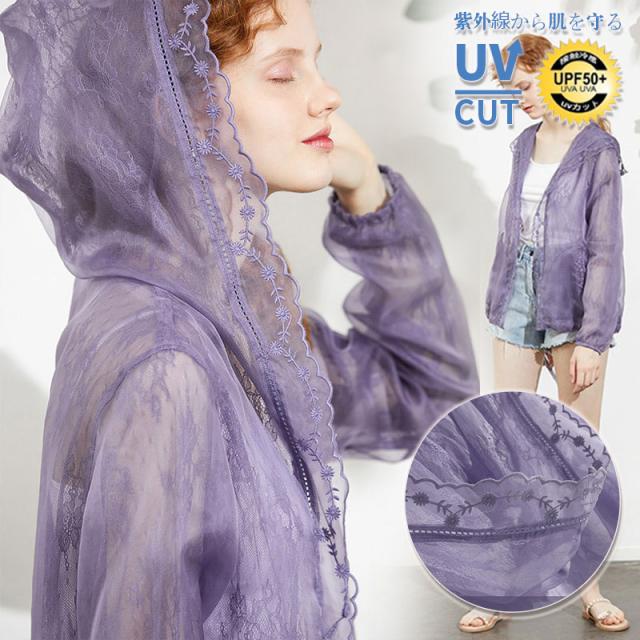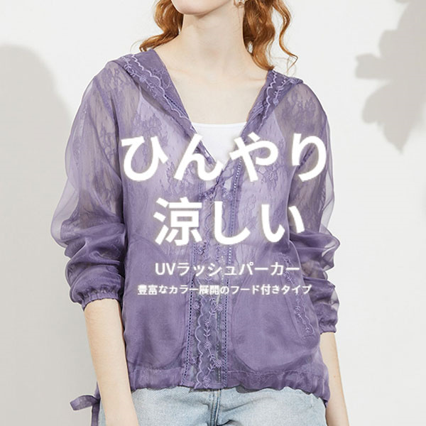 ラッシュガード レディース レース 接触冷感 UVカット パーカー 長袖 フード付き ライトアウター 通気性 紫外線対策 涼感 ゆったり 旅行 自転車