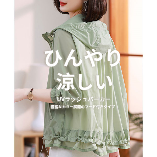 ラッシュガード レディース 日焼け止め 長袖 春夏 裾バルーン フード付き アウター 涼しい 薄手 日焼け対策 レース UV対策 冷房対応 オフィス