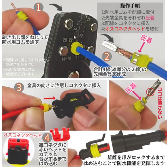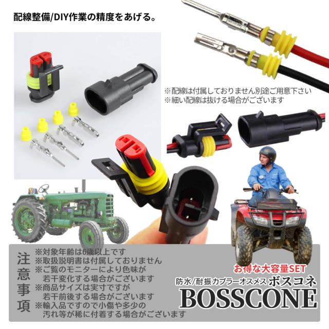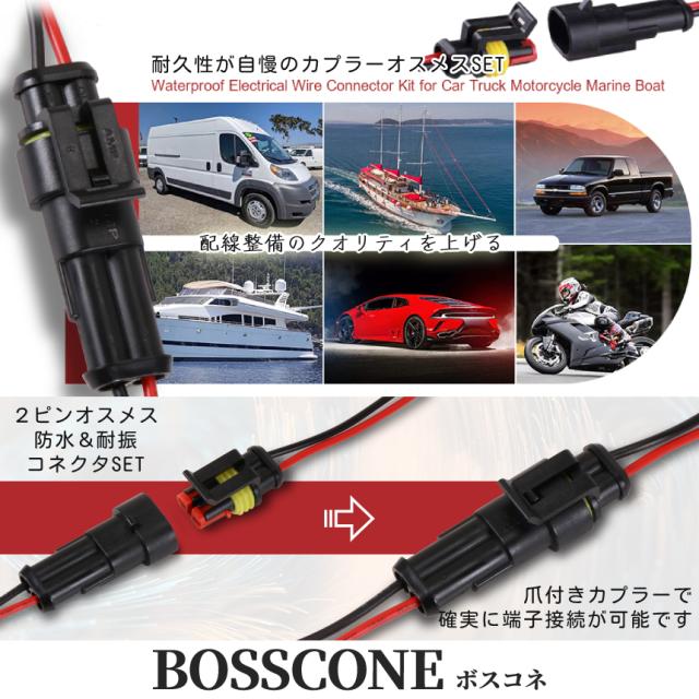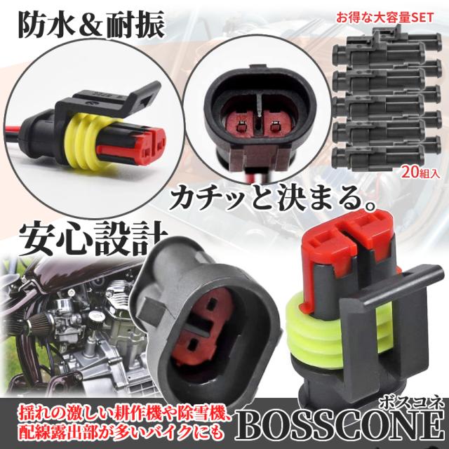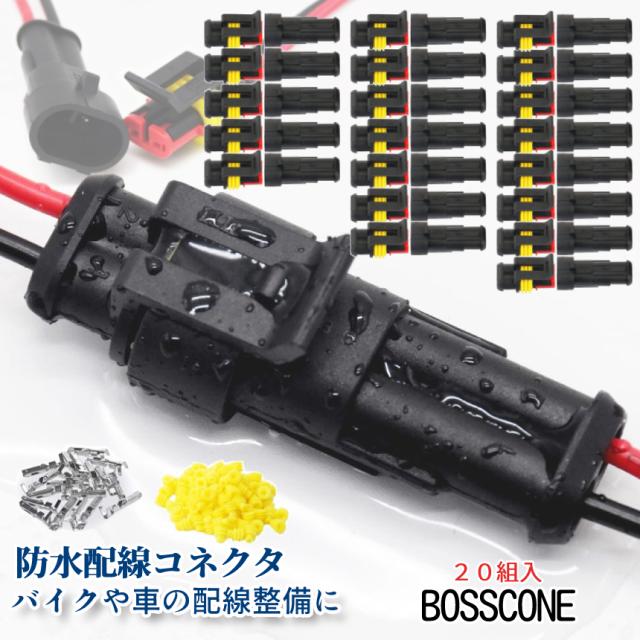 防水 配線 コネクタ 耐振 カプラー セット 20組入り 車 バイク カスタム 整備 日本語操作手順入り 爪付き 防水カプラー オス メス 接続 端子 圧着 電気配線 DIY 作業 効率 2-BOSSCONE 送料無料