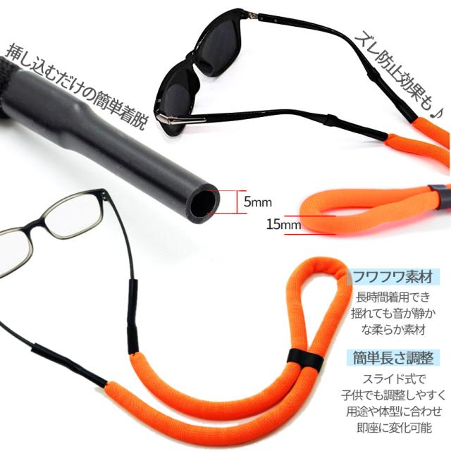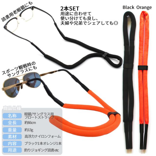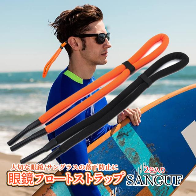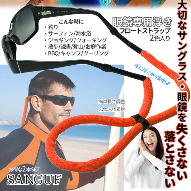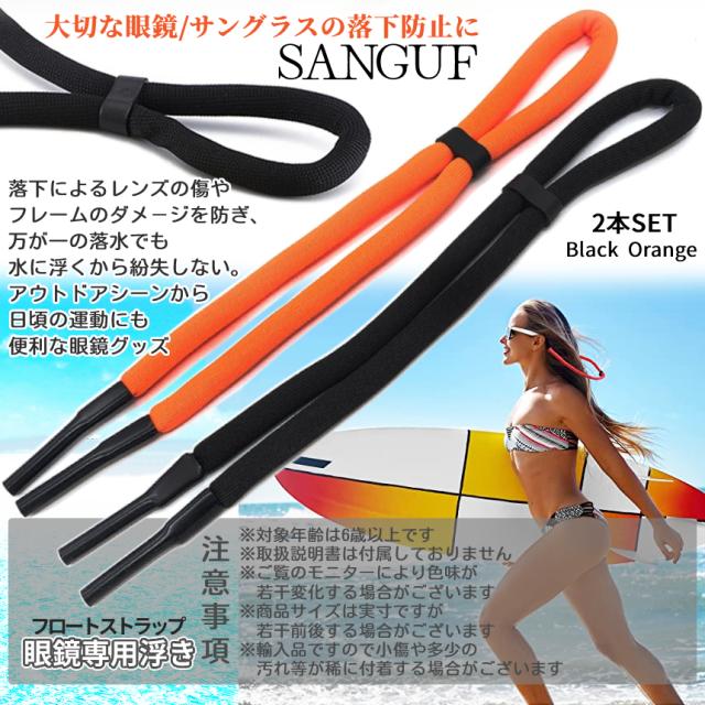 水に浮く サングラス メガネ フローティング ストラップ グラスコード 2色セット 眼鏡 フロート 落下 水没 紛失 防止 マリンスポーツ 釣り ジョギング ランニング プール 海 川 オレンジ ブラック 2本入り SANGUF 送料無料