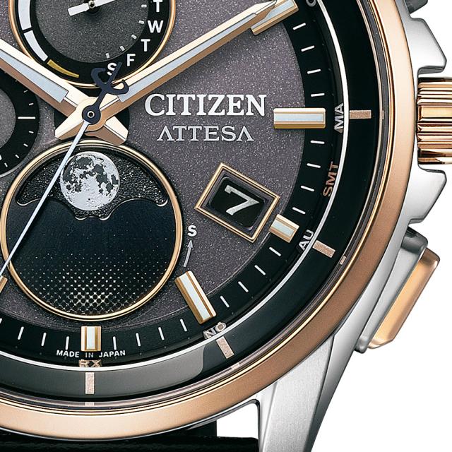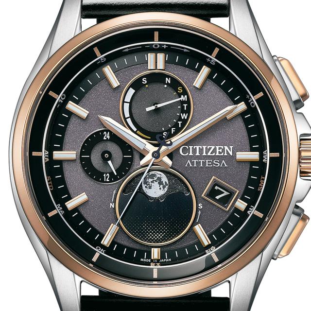 シチズン アテッサ ブラックチタンシリーズ ムーンフェイズ ルナプログラム BY1004-17X メンズ 腕時計 ソーラー 電波 革ベルト Cal.H874