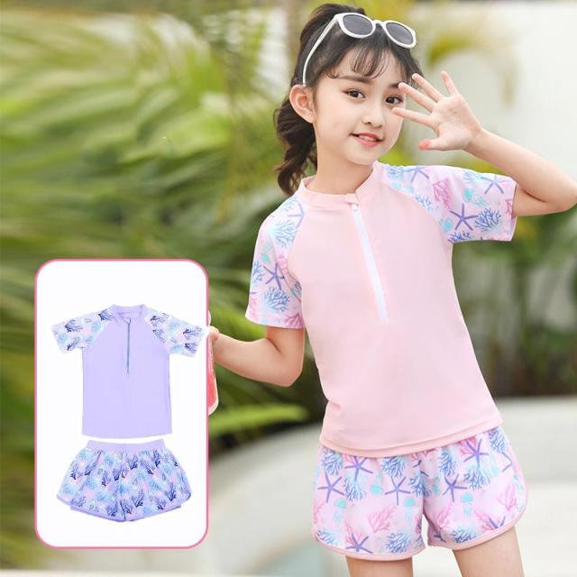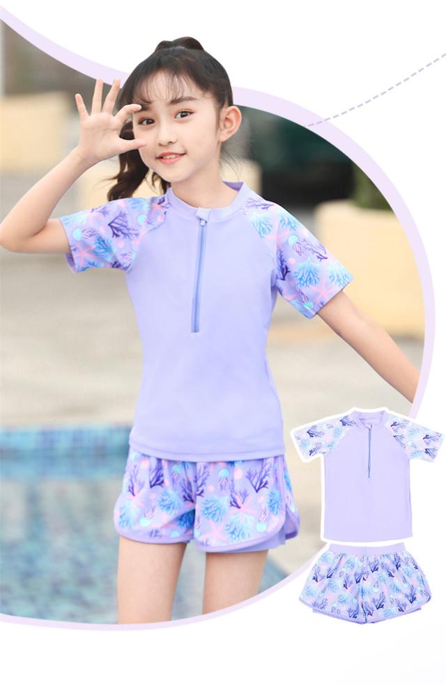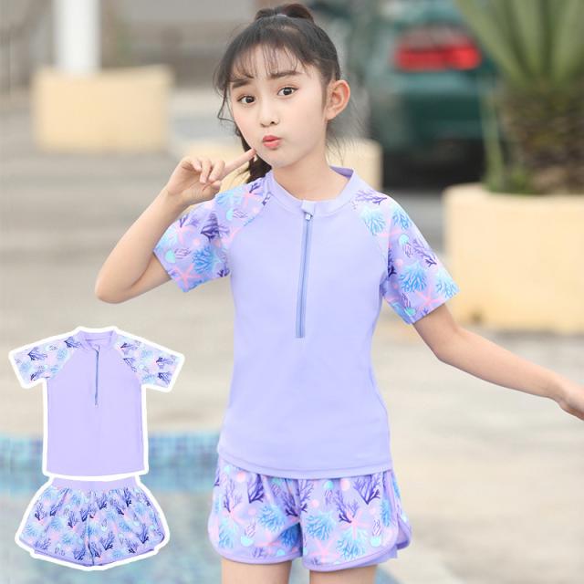 水着 子供 ジュニア 女の子 スクール水着 セパレート キッズ 水着 女児 半袖 ショートパンツ ラッシュガード ガールズ プール ビーチ 可愛い 夏