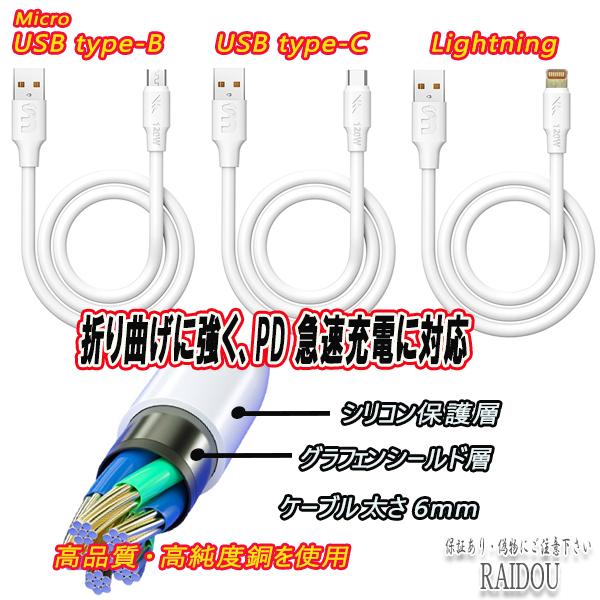 【ケーブル Micro USB type-B/USB type-C/Lightning】