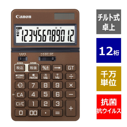 CANON(キヤノン) KS-1250TUV-BR ナチュラルブラウン 抗菌・抗ウイルス ビジネス電卓 12桁