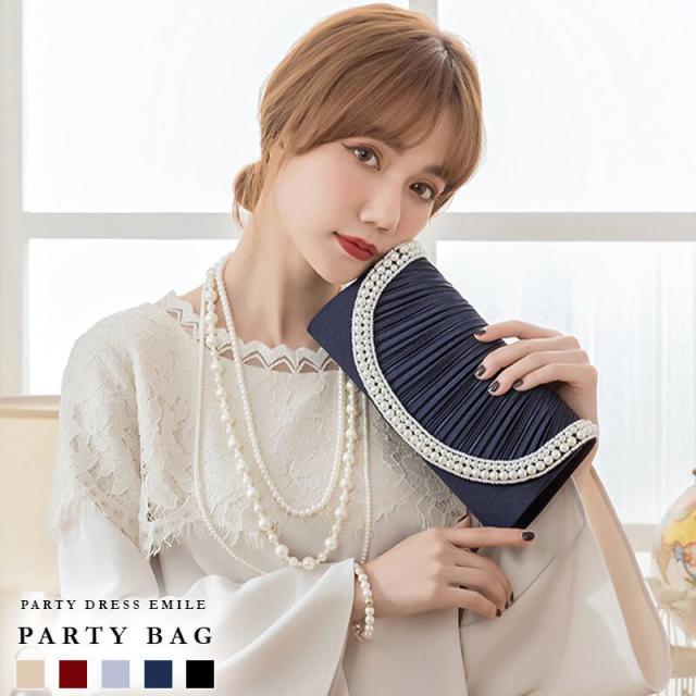 高級感あふれるプリーツサテンとパールの装飾が持っているだけでエレガントな雰囲気を演出します。