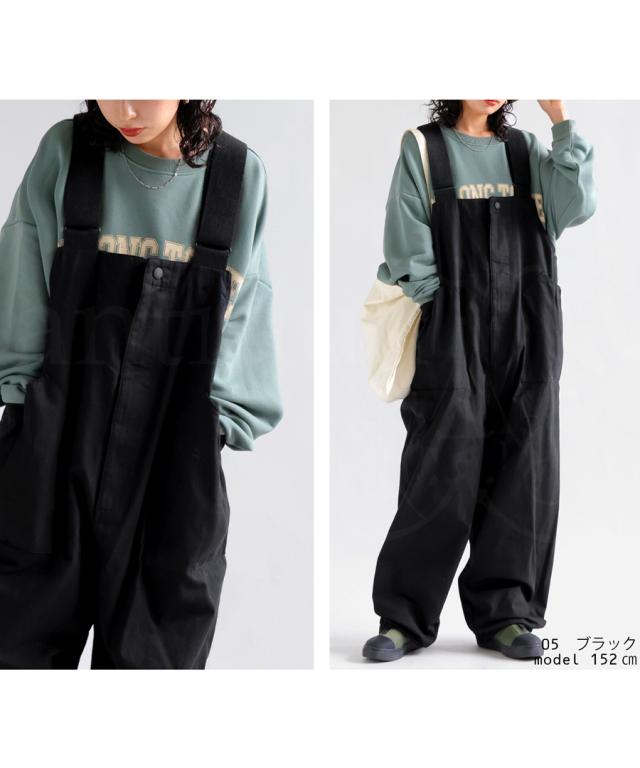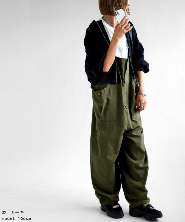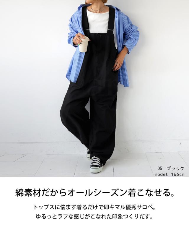 zy-00080 綿100 ワイド ワイドパンツ 長ズボン シンプル サロペットパンツ サロペ オールインワン 体型カバー 細見え 華奢見え 綿 コットン オーバーサイズ オーバーオール