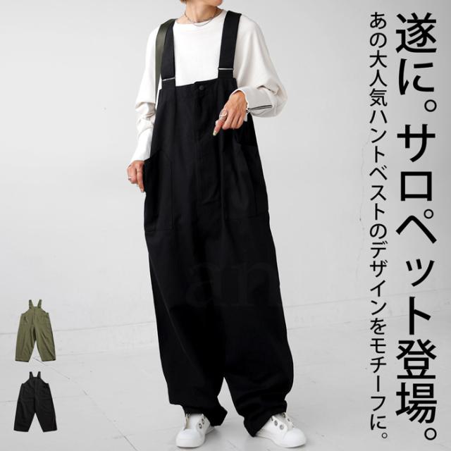サロペット レディース ロング ボトムス 無地 ゆったり 送料無料・再入荷 メール便不可