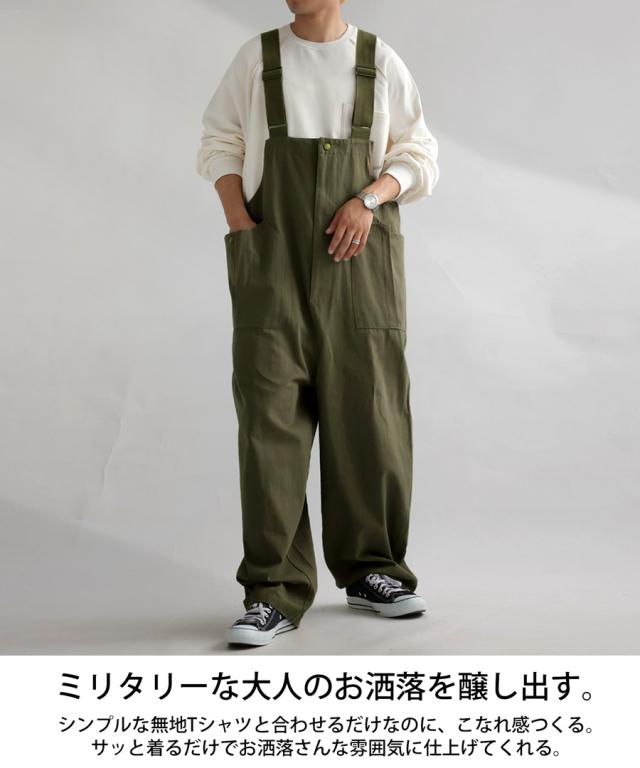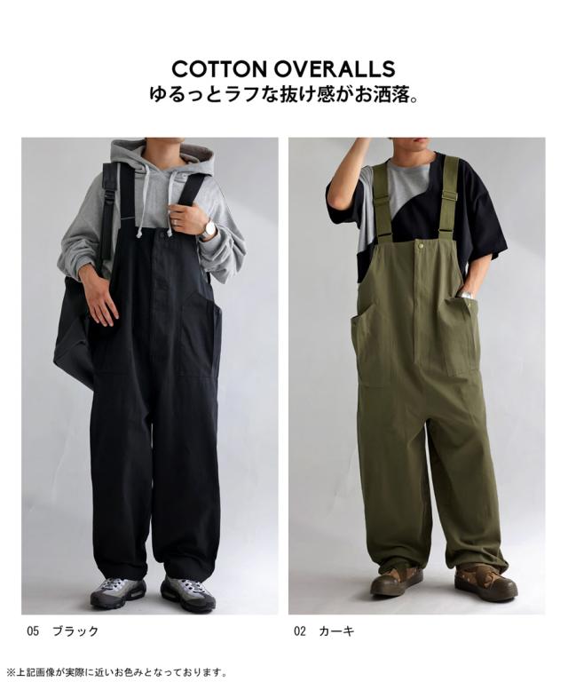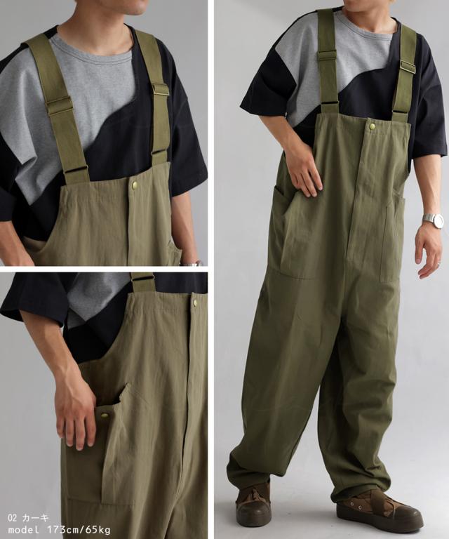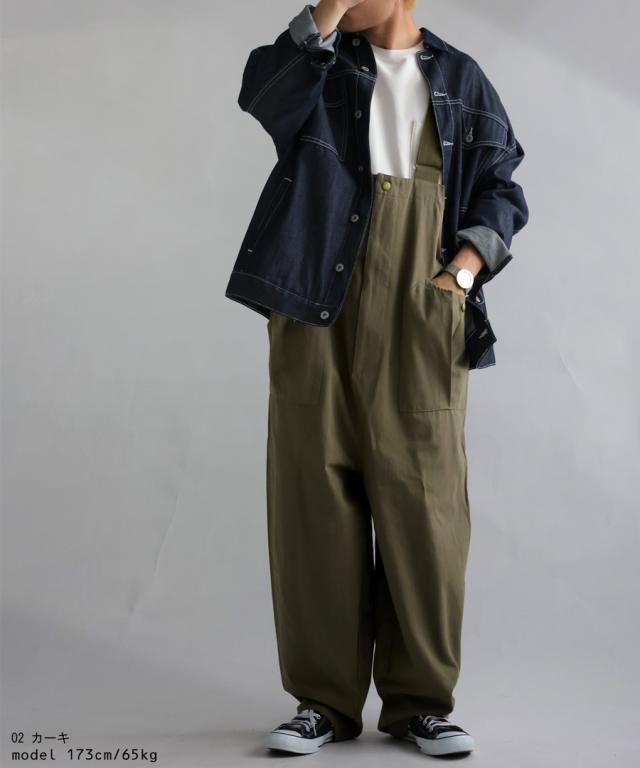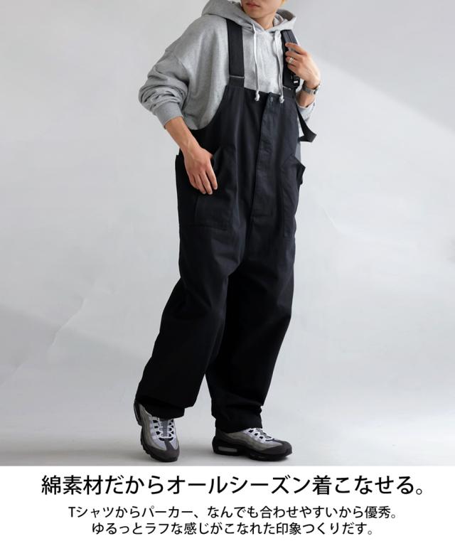zy-00080z 綿100 ワイド ワイドパンツ 長ズボン シンプル サロペットパンツ サロペ オールインワン 体型カバー 細見え 華奢見え 綿 コットン オーバーサイズ オーバーオール