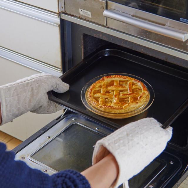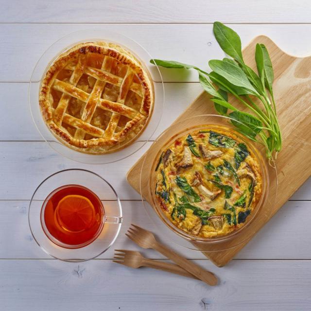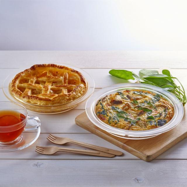 シンプルなデザインのガラス製なので、調理後そのまま器として食卓へ出すことができます。パイ皿としてはもちろん、ミートパイやキッシュなどのお料理、日常使いのお皿としても使いやすいサイズです。