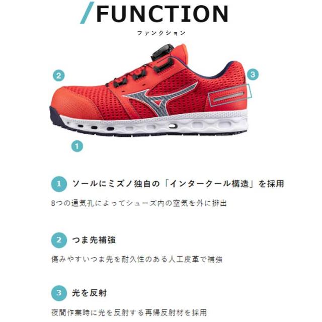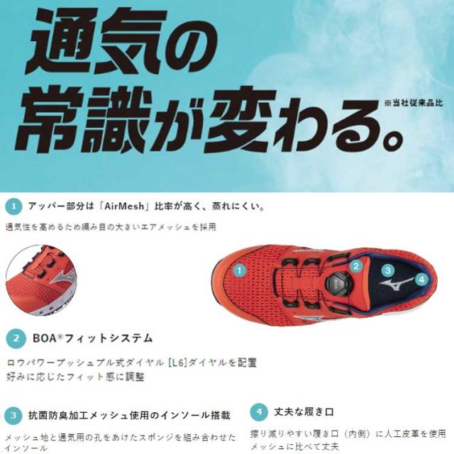 ミズノ セーフティ 【安全靴 m2306】 安全スニーカー オールマイティVH51L BOA ローカット ワーキング メンズ F1GA2306 通気性 耐滑 おしゃれ ローカット boa