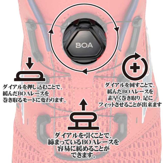 ■BOAフィットシステム:ロウパワーのプッシュプル式ダイヤルを配置