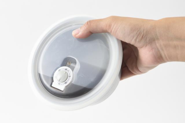 樹脂製の蓋には、賞味期限がわかる日付入りの目盛りが付いています。