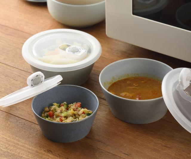 テーブルシーンを華やかに演出するマット柚薬のセラミックボウルです。保存や温めに便利な樹脂製の蓋付きで、蓋の空気弁を開けばレンジで加熱が可能です。休日に作り置きしたものも加熱してそのまま食卓に出せるので、忙しい毎日に活躍しそうです。