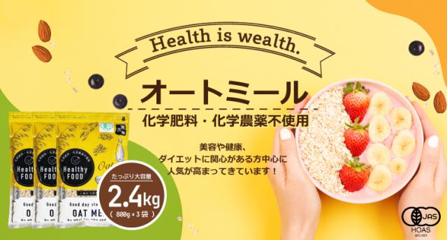 ロールドオーツ オートミール 2.4kg オーガニック 有機 オーツ麦 ダイエット 置き換え 無添加 化学肥料 化学農薬不使用 800g×3袋 こめたつ 自然の蔵