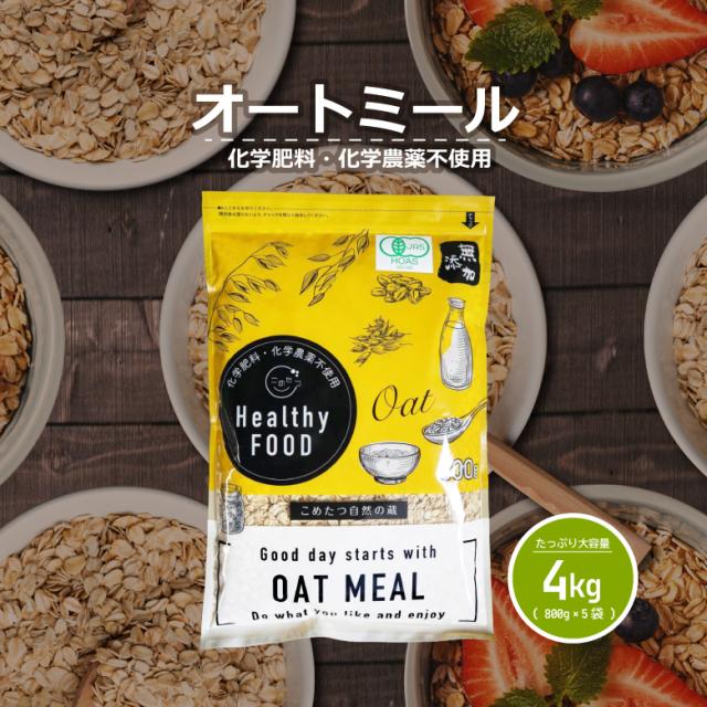 ロールドオーツ オートミール 4kg オーガニック 有機 オーツ麦 ダイエット 置き換え 無添加 化学肥料 化学農薬不使用 800g×5袋 自然の蔵