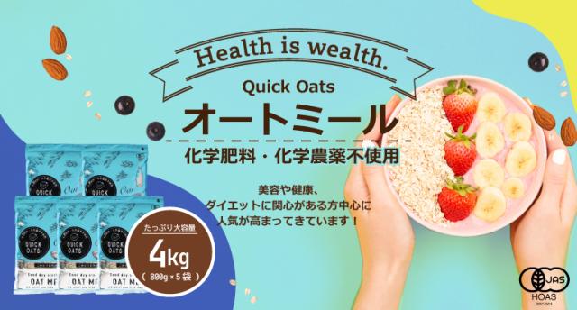クイックオーツ オートミール 4kg オーガニック 有機 オーツ麦 ダイエット 置き換え 無添加 化学肥料 化学農薬不使用 800g×5袋 自然の蔵