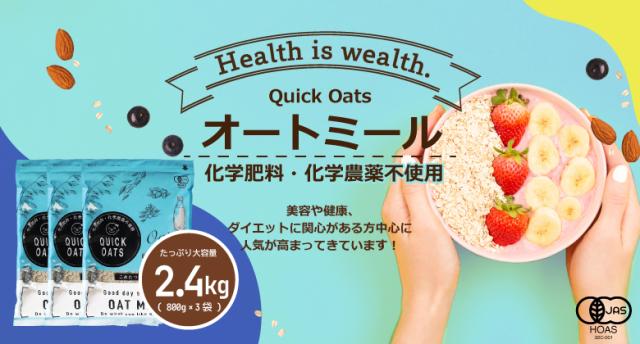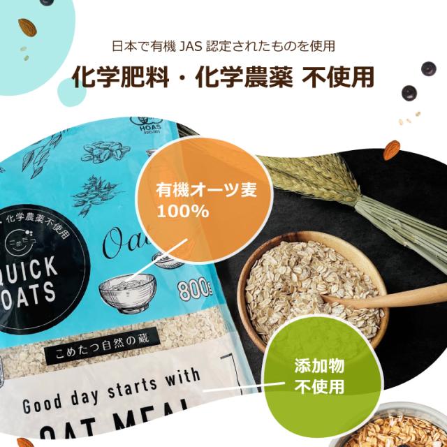 クイックオーツ オートミール 2.4kg オーガニック 有機 オーツ麦 ダイエット 置き換え 無添加 化学肥料 化学農薬不使用 800g×3袋 自然の蔵