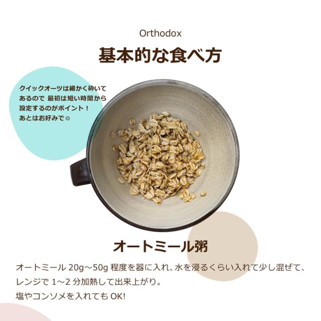 有機栽培されたオーツ麦を原料に、アメリカでクイックオーツタイプに仕上げられた商品です。