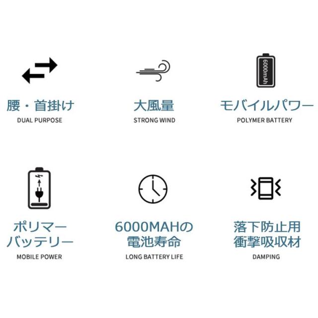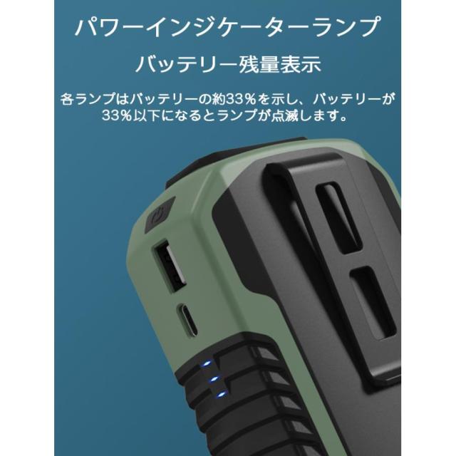 6000mAhの大容量バッテリーを内蔵した小型ファンでモバイルバッテリーとしても使えます。低モードを使用している時間が20時間以上に到達します。便利なUSB充電式で、PCや電源アダプターにUSBケーブルを接続だけでどこでも充電できます。※メジャー採寸の為、サイズが多少異なる場合がございます。予めご了承ください。