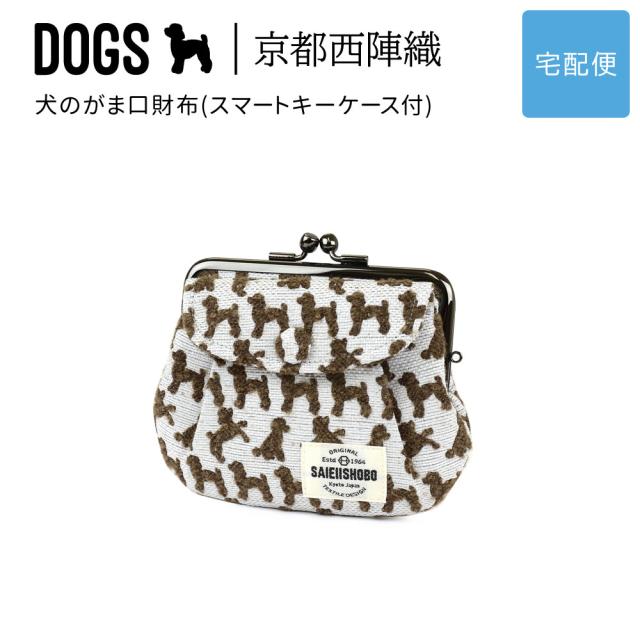 犬のがま口財布 DOGS 西陣織 日本製 犬柄 生地 撥水加工 ジャガード レディース SAIEIISHOBO 西栄【宅配便専用商品】スマートキーケース付 犬グッズ 雑貨 犬好き トイプードル ホワイト/ブラウン 25012061