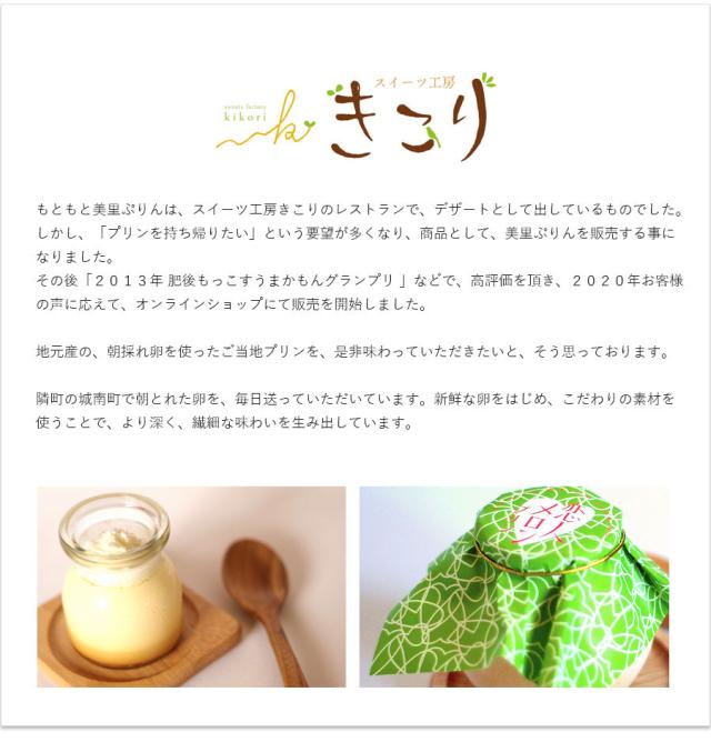 九州で一人しか作っていない幻の恋人メロンを使った恋人メロンぷりんはプレーンの美里ぷりんの甘みや滑らかさを生かしつつメロンの風味を引き出します。爽やかですっきりとしたフルーティな味わいが特徴です。