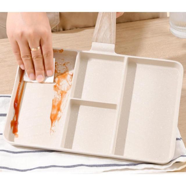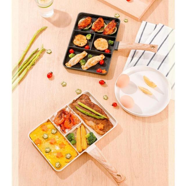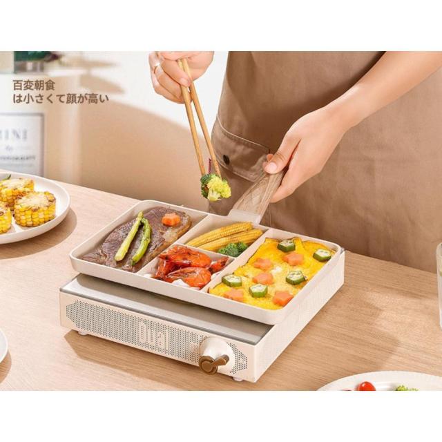 【多機能フライパン】フォーインワンポットで3種類の料理を同時に調理でき、真ん中の仕切りで味の混ざり合いを防ぎ、味覚のニーズに応えます。