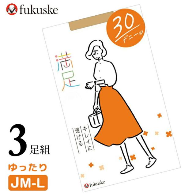 福助 ストッキング 満足 30デニールやわらか シアータイツ 540-1111 ゆったりサイズ 3足組 送料無料 満足 ストッキング 大きいサイズ マチ付き シアータイツ フクスケ パンスト パンティストッキング まとめ買い 3足 消臭(05677)