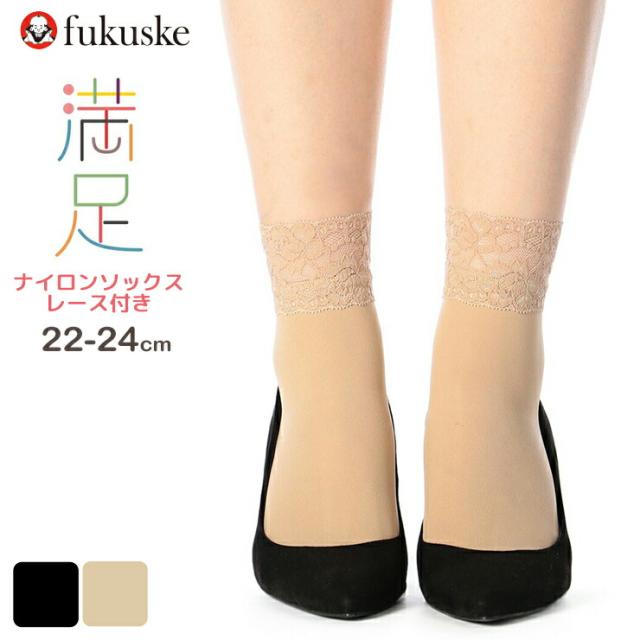 福助 レディース 靴下 満足 やわらかく心地いい クルー丈レース付 340-4201 単品 ソックス 婦人靴下 福助 満足 フクスケ 抗菌 防臭 ナイロンソックス fukusuke(05718)