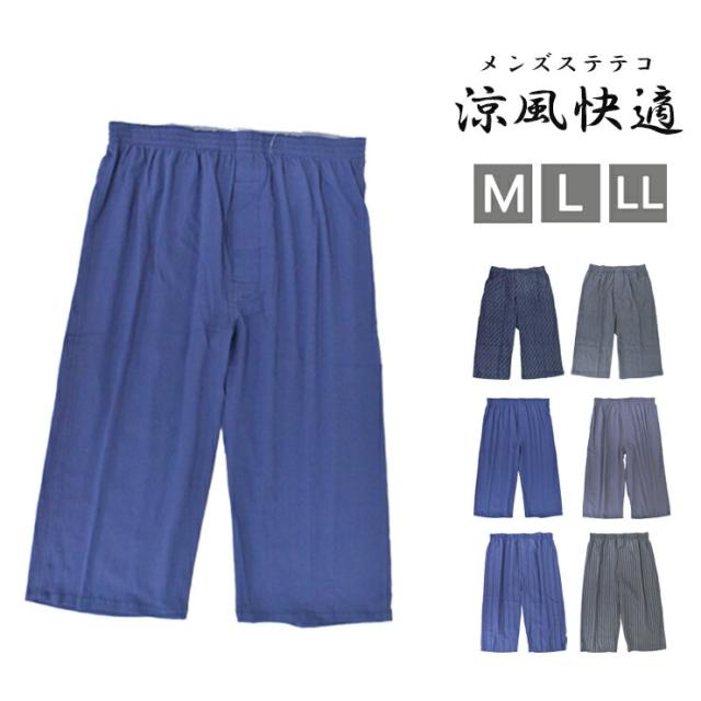 ステテコ メンズ 新栄 7分丈 New 涼風快適 単品 送料無料 綿 吸汗速乾 すててこ クレープ肌着 エコ ズボン下 夏 サマー ルームウェア 涼しい 父の日 敬老の日(05720)