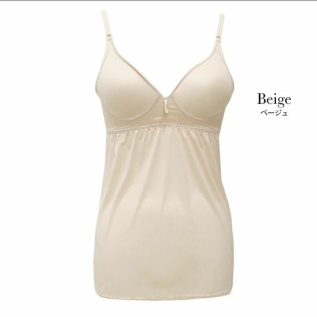 ブラ キャミソール フルカップ付き SUBROSA K510SR カップ付き ブラキャミソール ブラジャー スリップ ワンピース 透け防止 ブラ付き 吸水速乾 ベージュ 調整ヒモ 静電気防止 レディース インナー 下着 肌着 おしゃれ かわいい シームレス 日本製 春 夏 秋 冬 (05734)