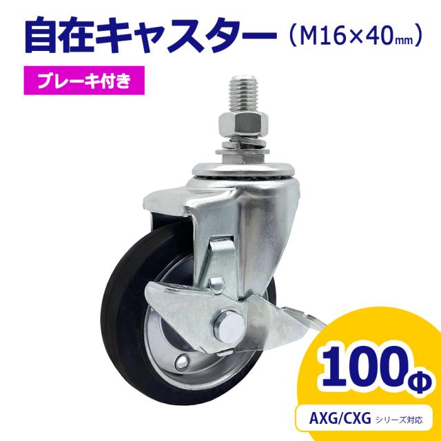 アルマックス ALMAX 自在キャスター 360度回転 ユーエイキャスター 車輪径100Φ M16×40mm ブレーキ付 アルミゲート用キャスター(ナット スプリングワッシャー 平ワッシャー 付き) AXG・CXG用 キャスター 車輪 交換用 ストッパー タイヤ 静音 DIY 高耐久性 06-114-1