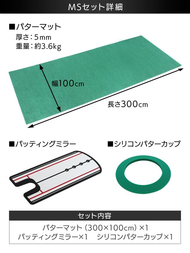 パターマット 3m ゴルフ 300×100cm Jシリーズ MSセット パター 練習 マット 室内 静音 ゴルフマット ベント 芝 パッティング パター練習 パット練習 絨毯 カーペット パッティングミラー パターカップ
