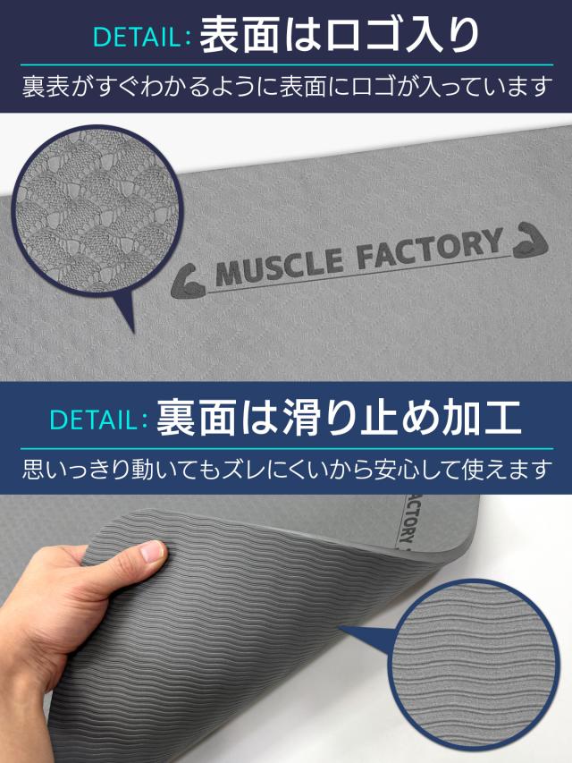 【極厚10mmで身体を痛めにくい】このマットは一般的な4mmのヨガマットに比べ倍以上厚い10mmのしっかりとした厚みになっているので、動的なヨガはもちろん筋トレなど動きのある運動をしてもしっかりと床から身体を保護します。