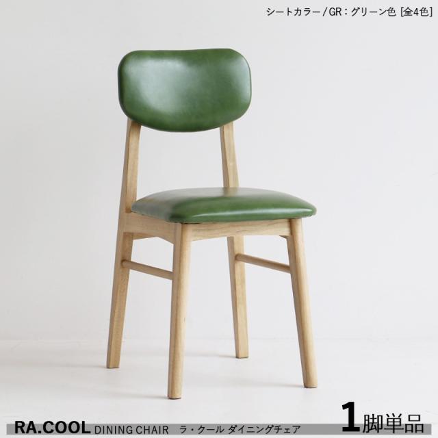 RA-COOL ラ・クール ダイニングチェア【1脚単品】グリーン色 / レザー 全3色+木製 天然木 ラッカー塗装仕上げ スリムタイプ 完成品 デスクチェア スリムチェアー 軽量タイプ